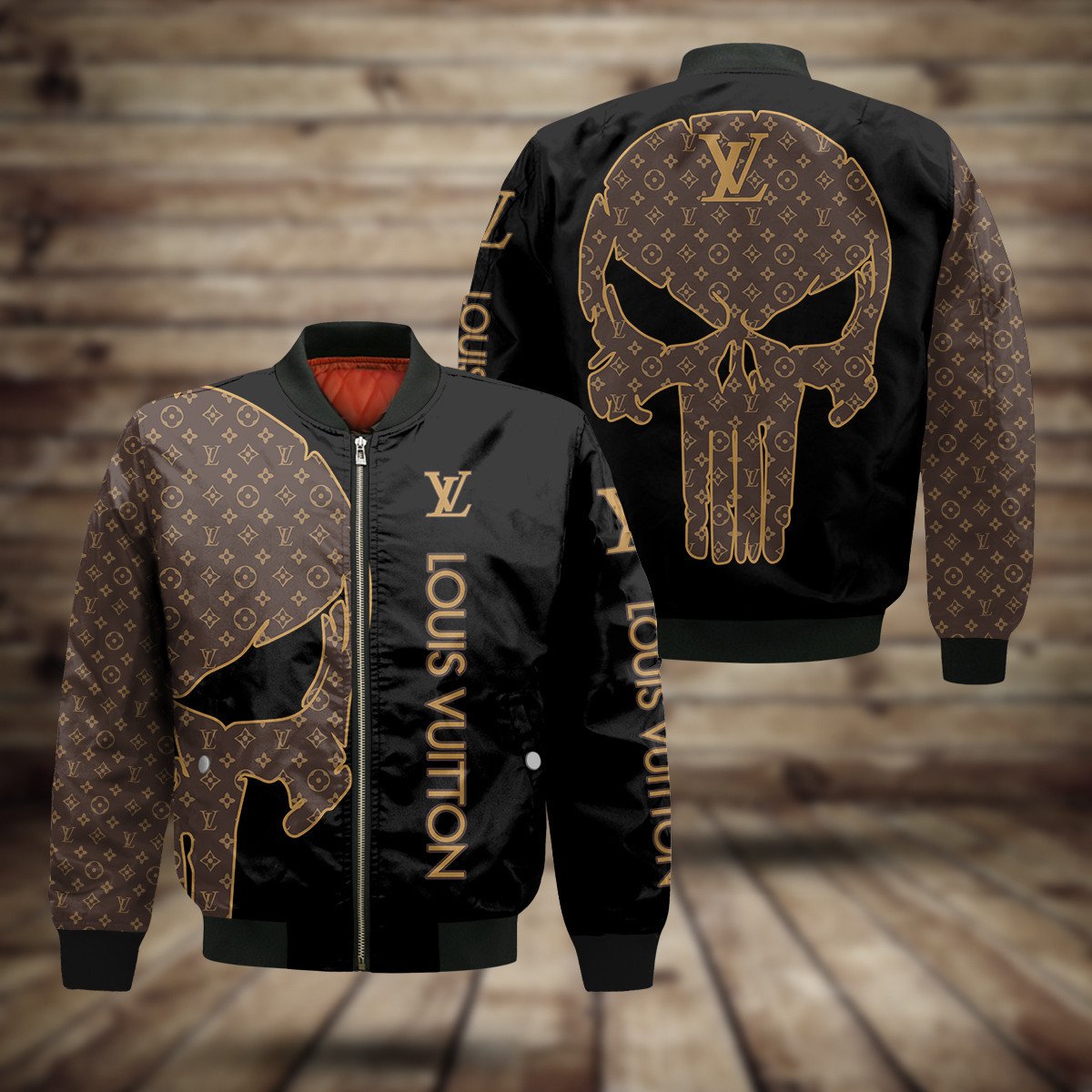 Louis Vuitton Skull Black Premium Bomber Jacket For Men Women