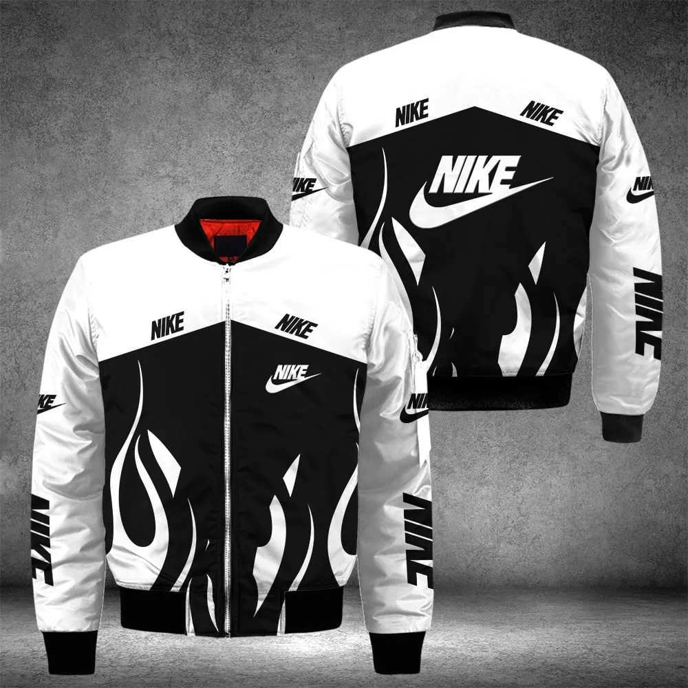 Nike Black White Luxury Brand Bomber Jacket Clothing Outfit For Men Women