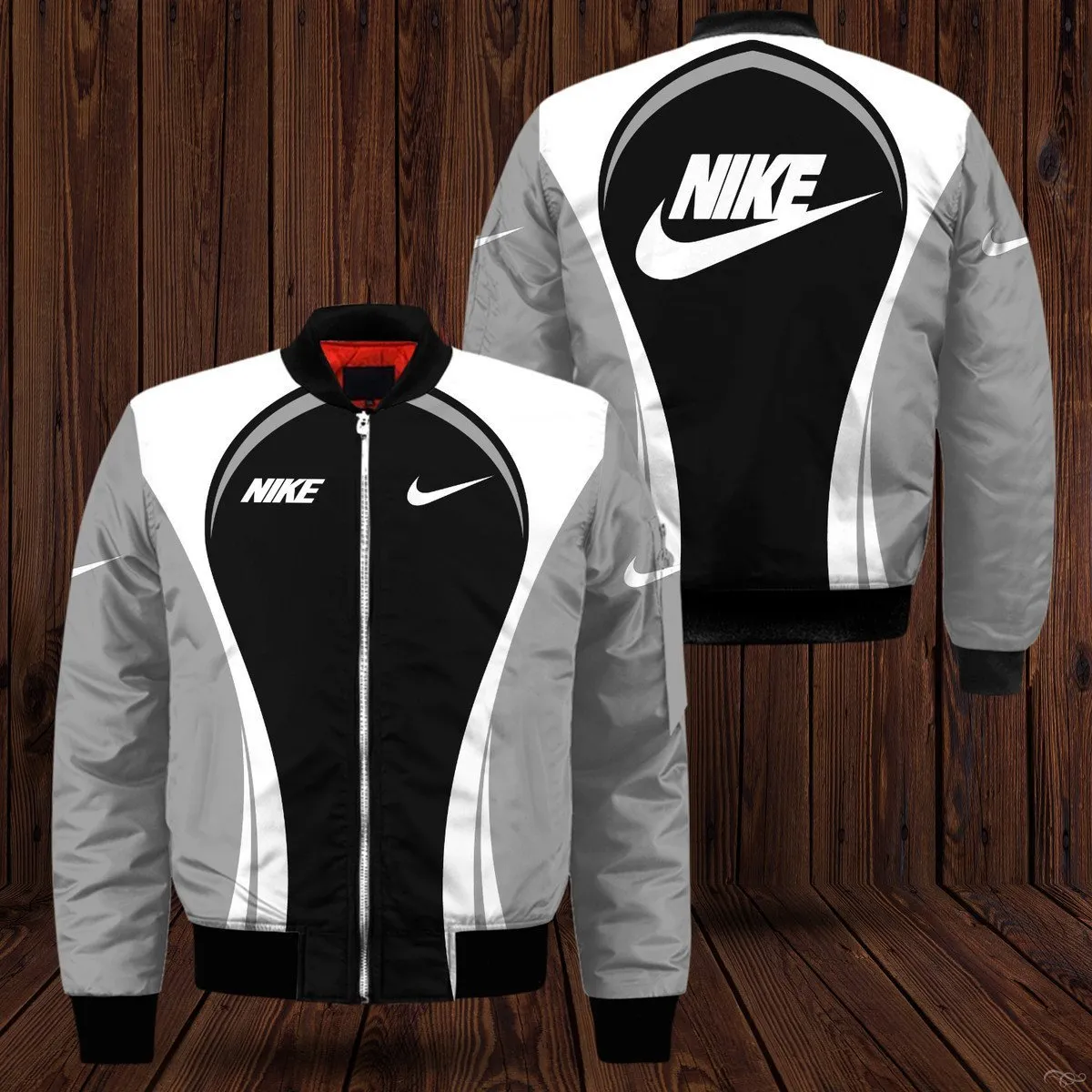 Nike Black White Grey Luxury Brand Bomber Jacket Clothing Outfit For Men Women