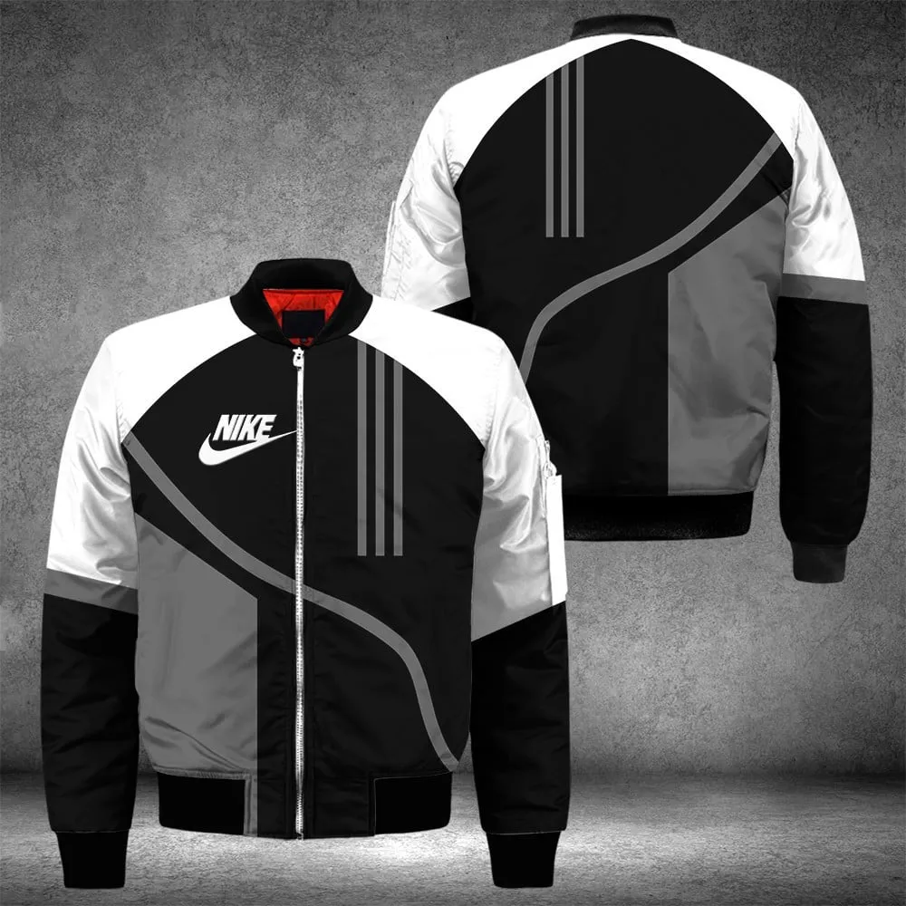 Nike Grey Black White Luxury Brand Bomber Jacket Outfit For Men Women