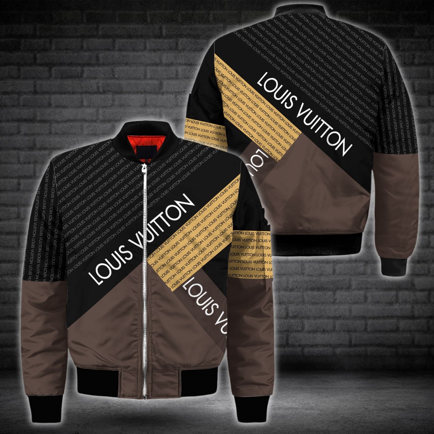 Louis Vuitton Brown Black Fashion Premium Bomber Jacket For Men Women