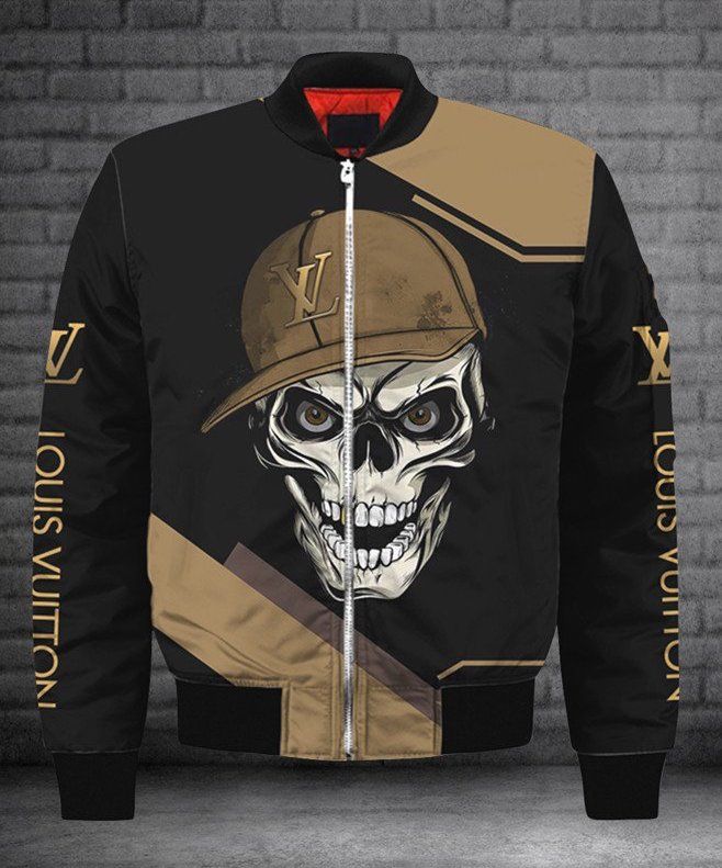 Louis Vuitton Brown Skull Luxury Brand Premium 2025 Bomber Jacket For Men Women