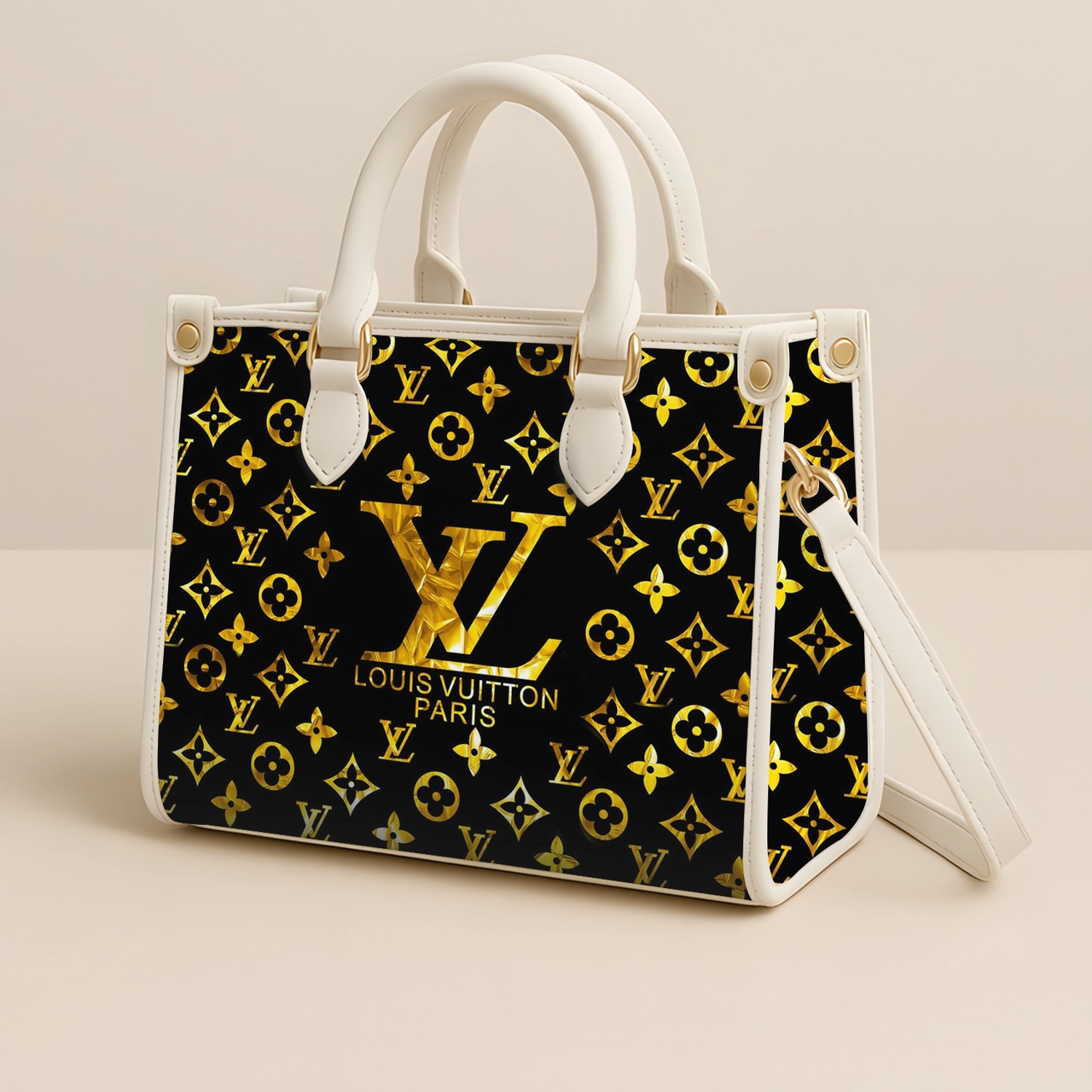Louis Vuitton Logo Gold Premium Leather Handbag Limited Edition