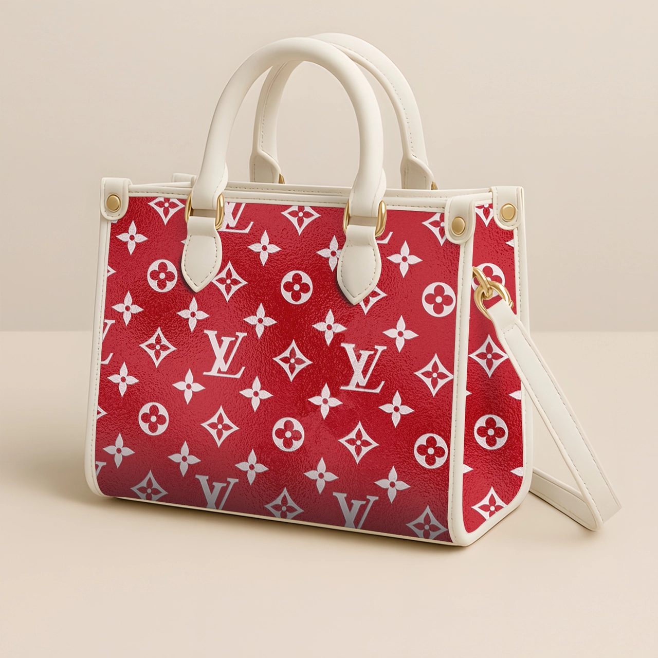 Louis Vuitton Logo Red Monogram Onthego Premium Leather Handbag Limited Edition