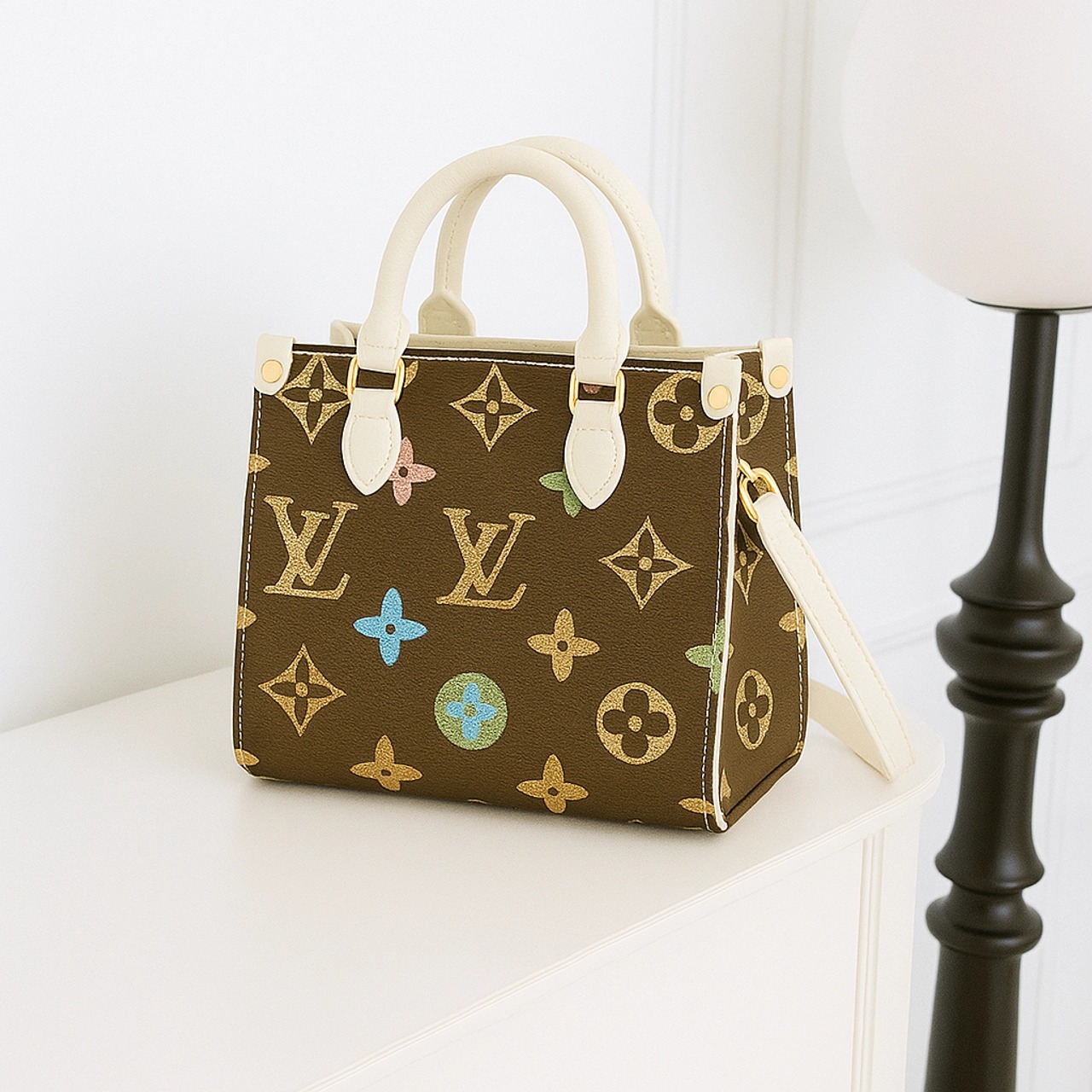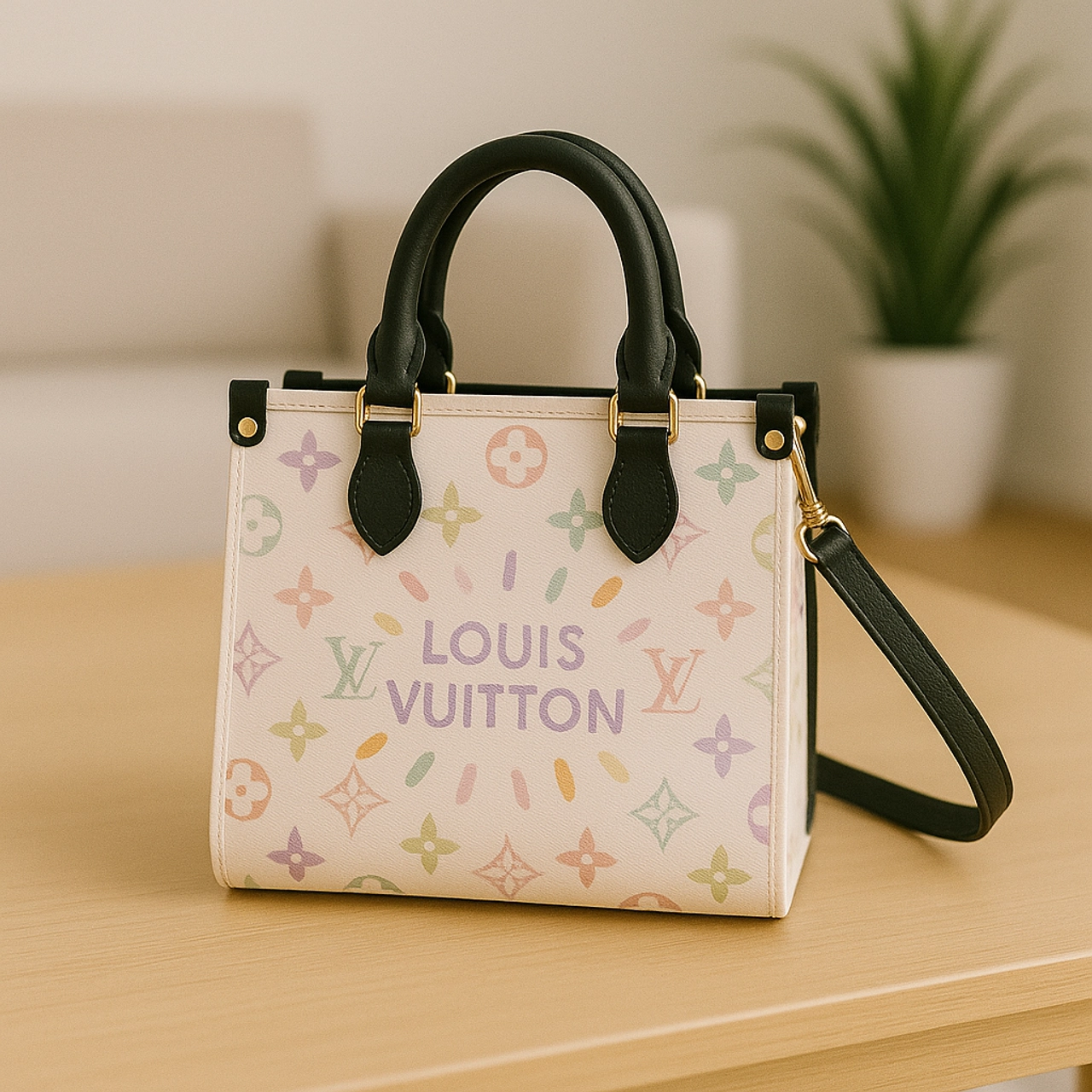 Louis Vuitton Navy Women Luxury Leather Hand Bag Pu Leather Printed