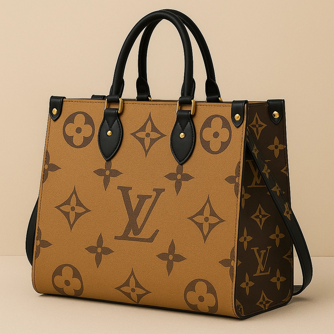Louis Vuitton Monogram Pattern Onthego Brown Premium Leather Handbag Limited Edition