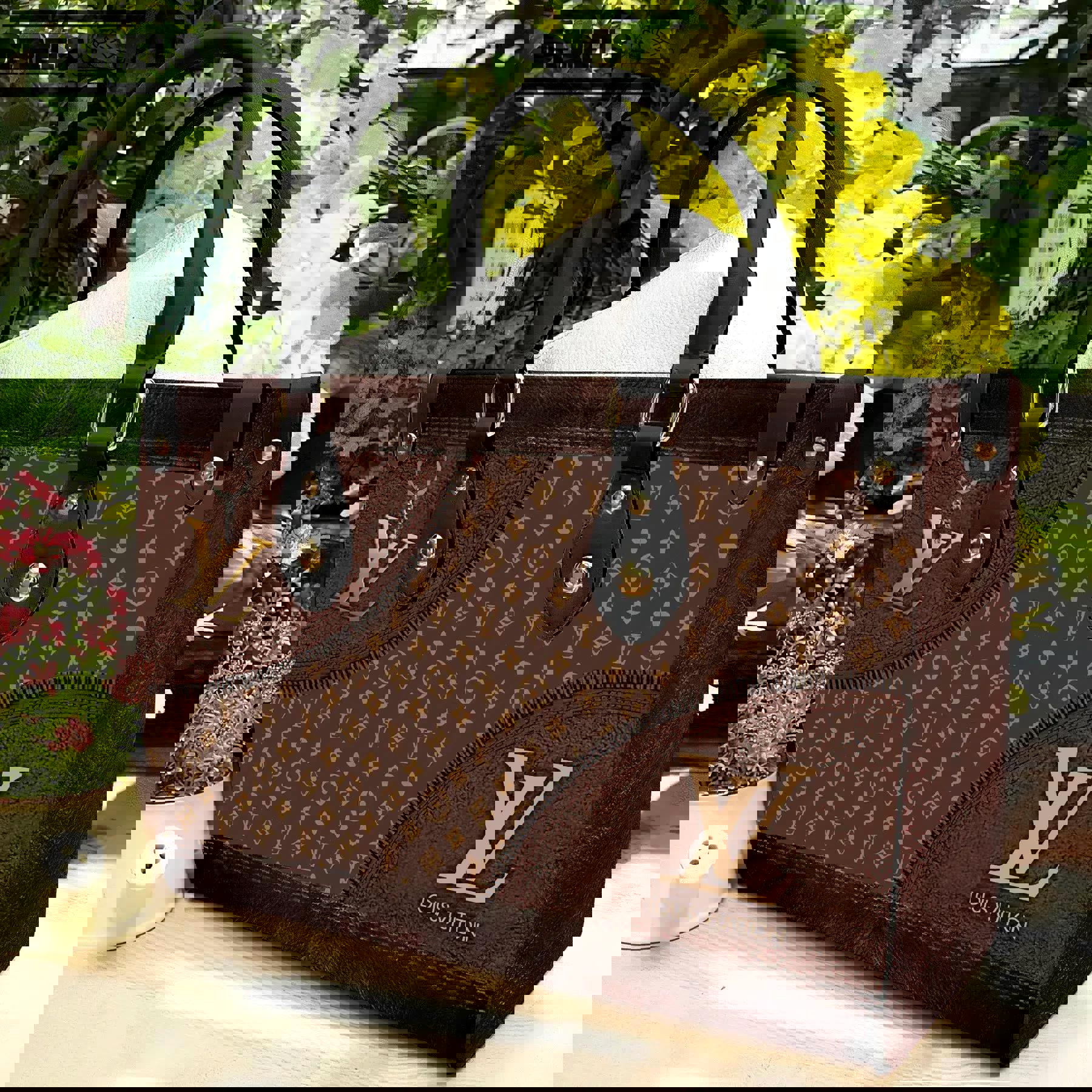 Louis Vuitton Yellow Logo Brown Black Luxury Brand Fashion Premium Women Handbag