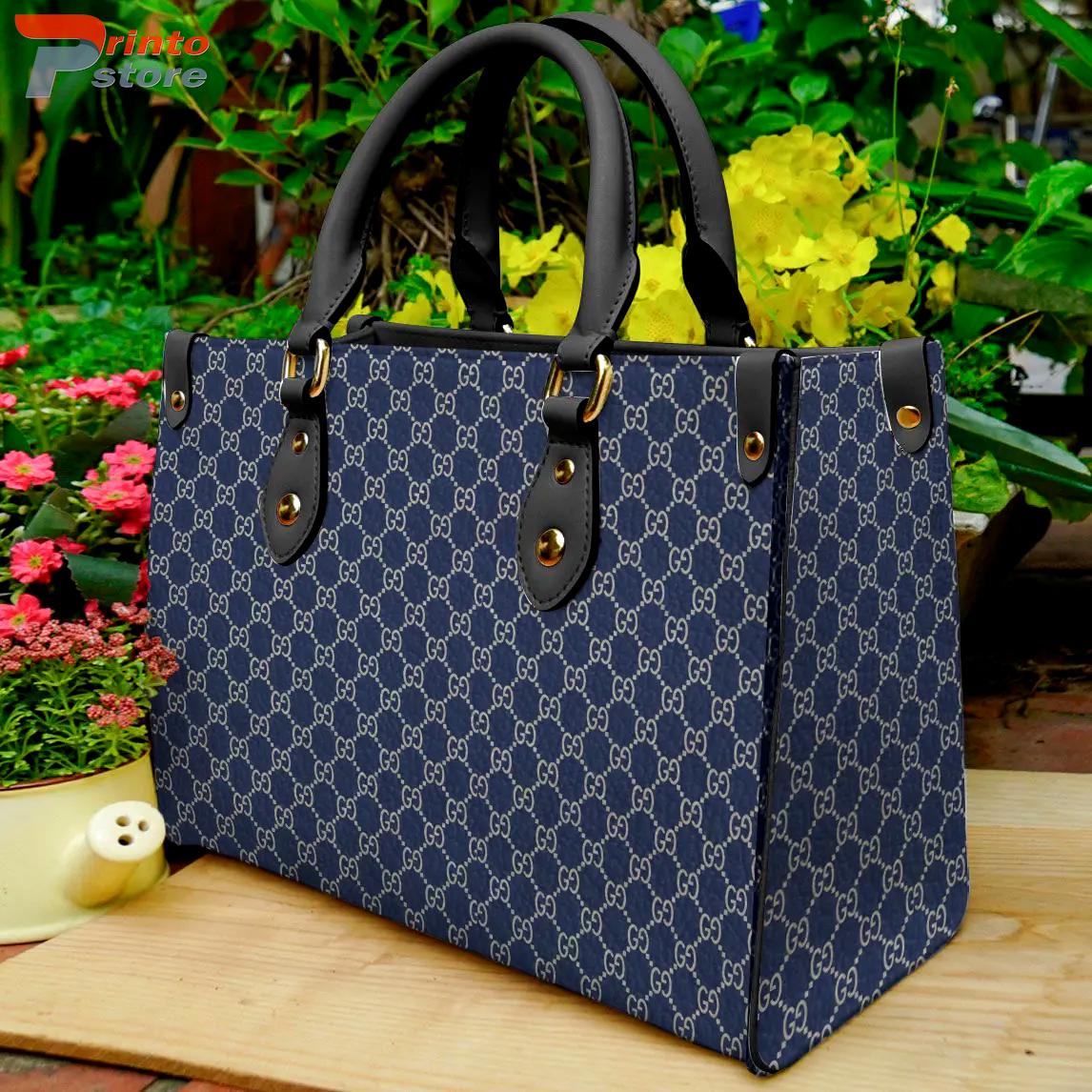 Navy Gucci Monogram Logo Leather Handbag Luxury Brand Gucci Bags 2025, Gucci Handbags For Women