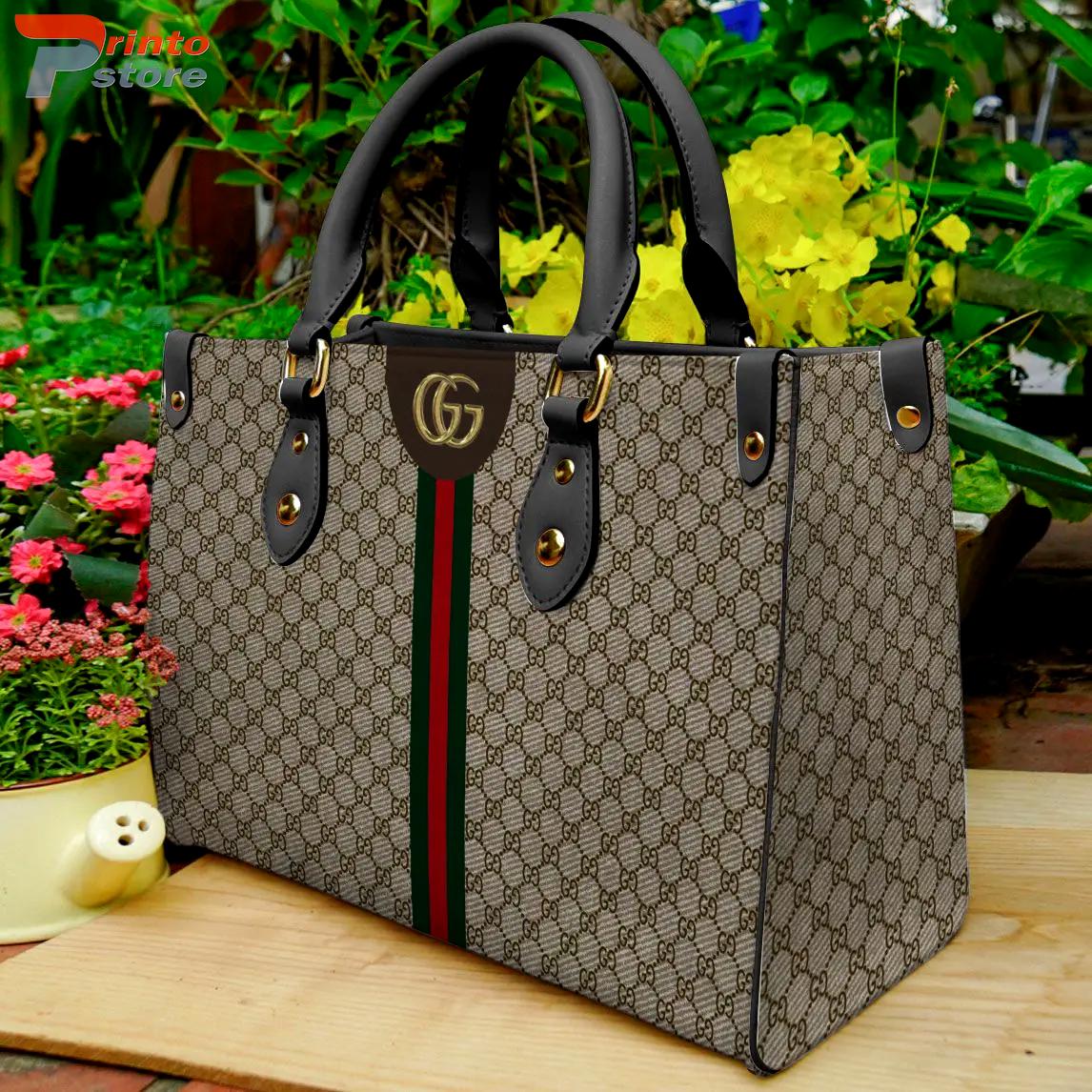 Gucci Beige Monogram Leather Handbag Luxury Brand Gucci Bags 2025, Gucci Handbags For Women