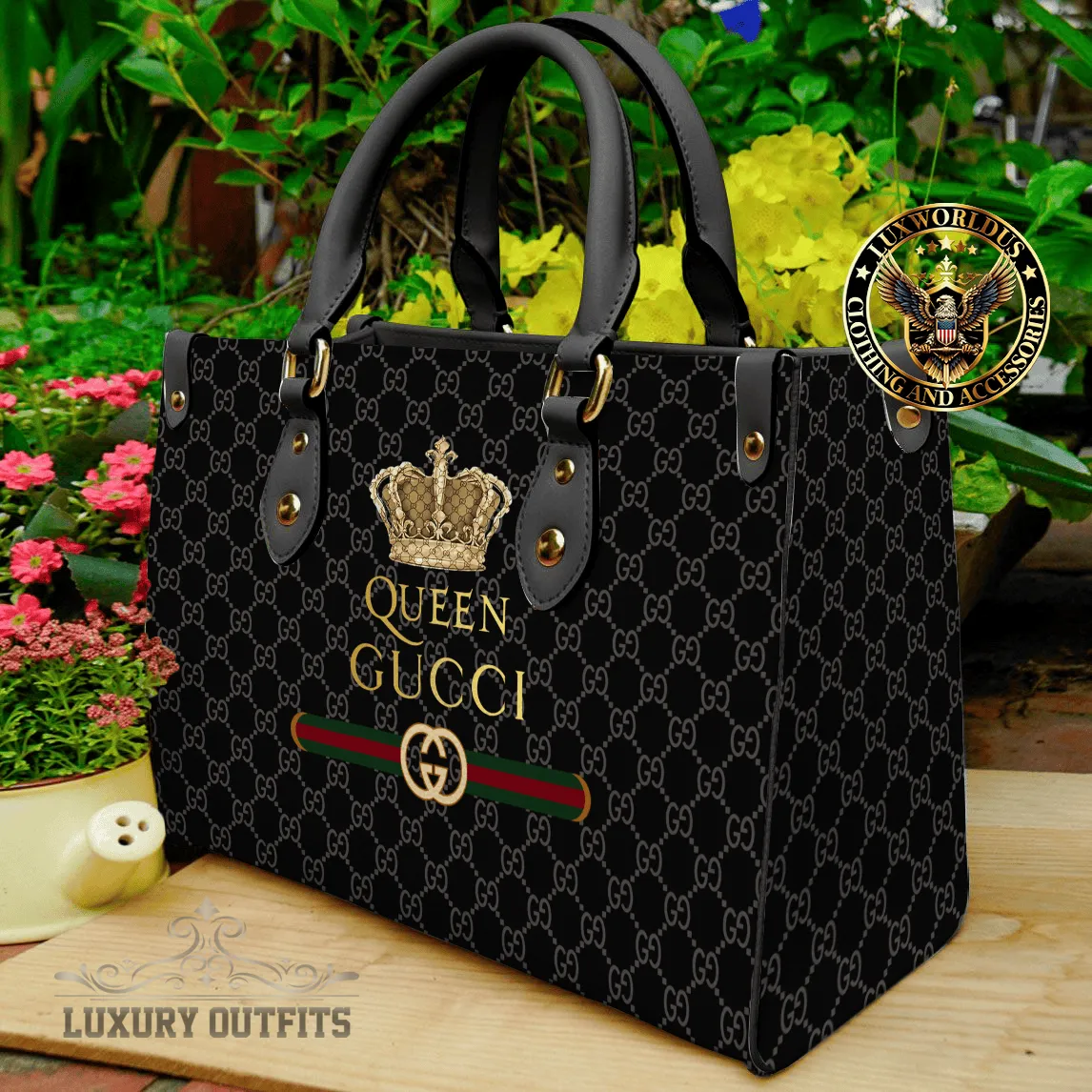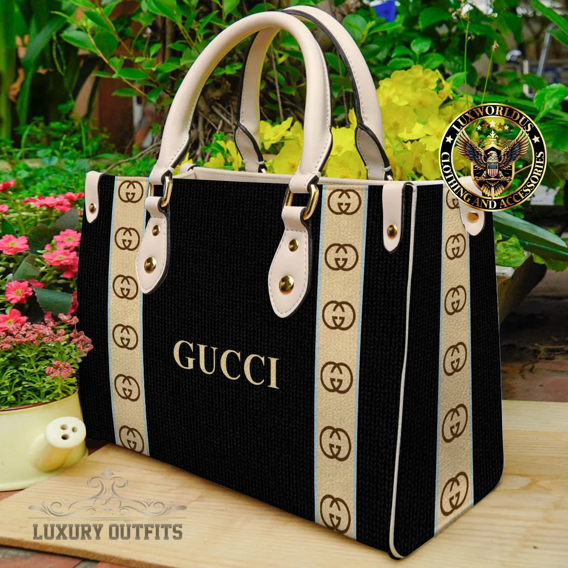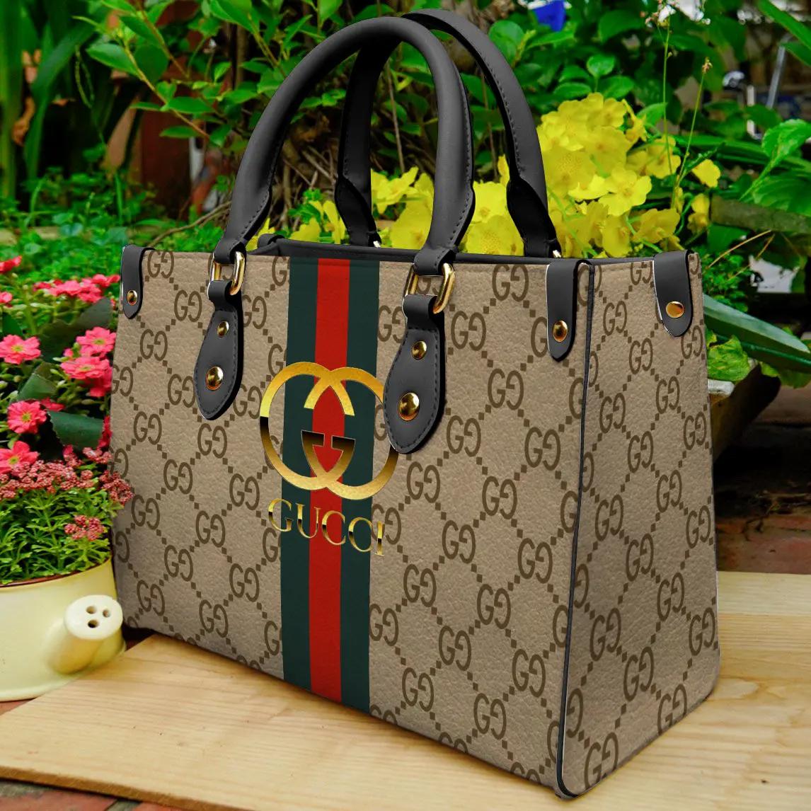 Gucci Black Print Pu Leather Handbag Luxury Brand Gucci Bags 2025