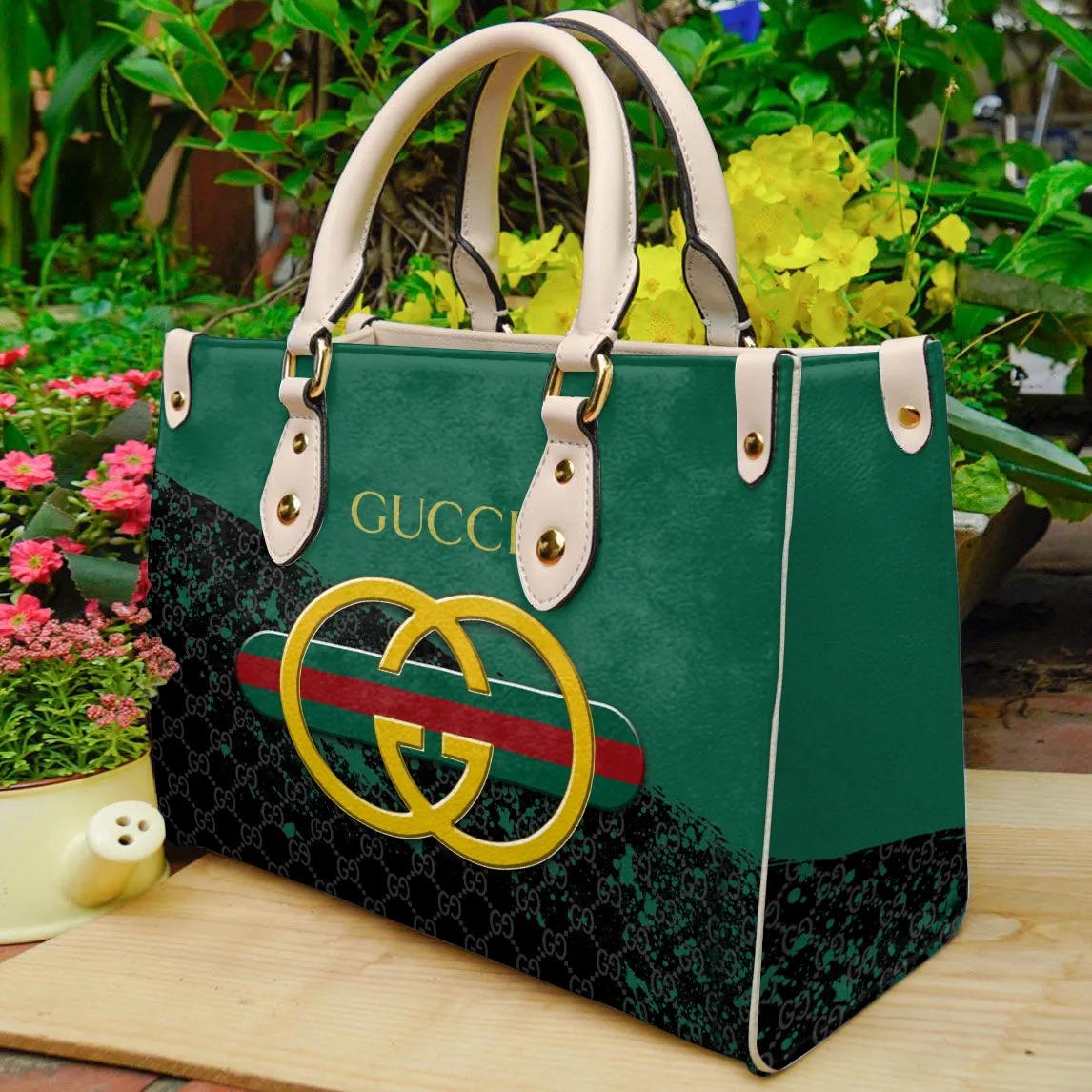Gucci Golden Logo Beige print PU Leather Luxury Brand Women Handbag Outfit For Beauty