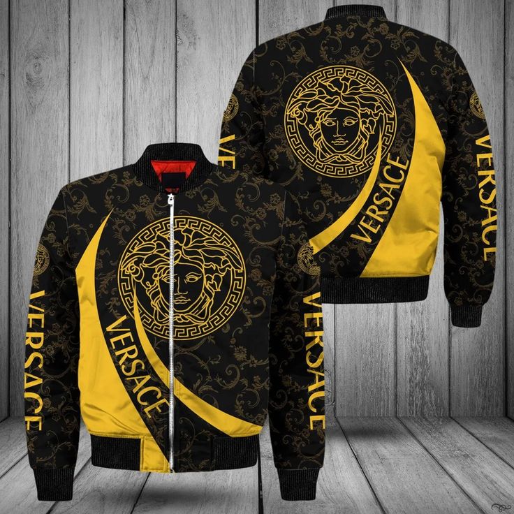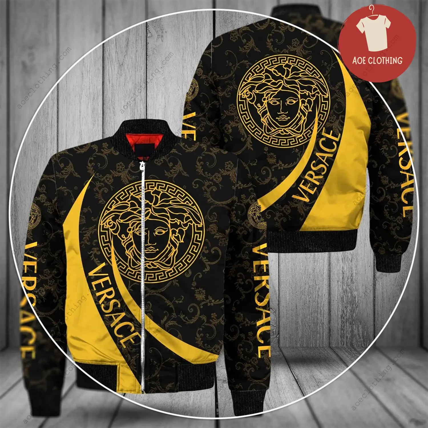 Versace Medusa Yellow Black Luxury Brand Bomber Jacket Clothing Outfit For Men Women