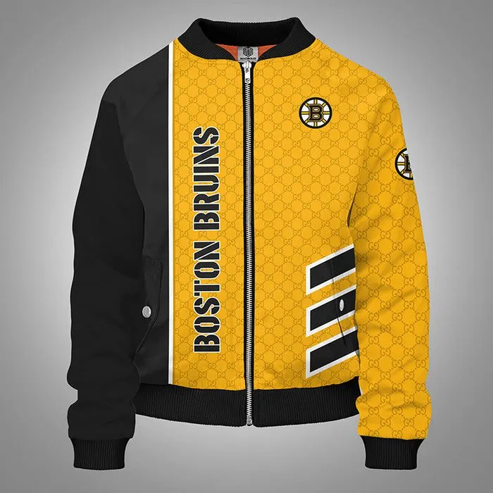Gucci Boston Bruins Yellow Unisex Luxury Bomber Jacket Clothing Outfit For Men Women