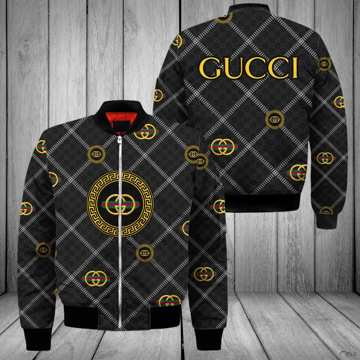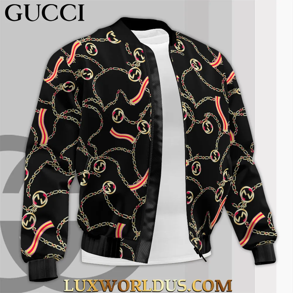 Gucci Pattern Black Luxury Brand Premium Bomber Jacket Clothing Outfit For Men Women