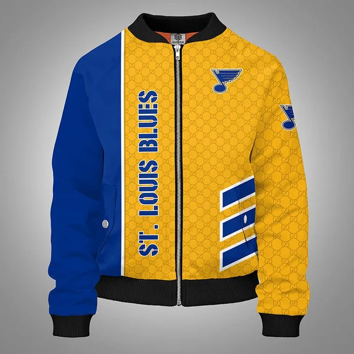 Gucci St. Louis Blues Blue Yellow Unisex Luxury Bomber Jacket Clothing Outfit For Men Women