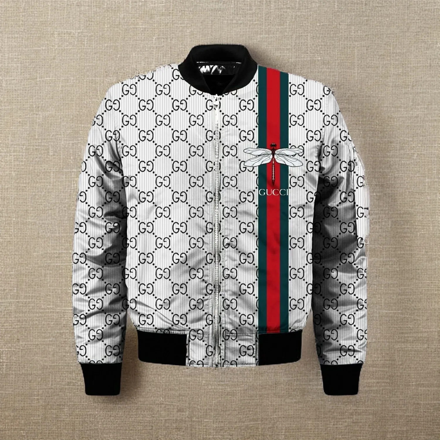 Gucci White Bomber Jacket Trending 2025 Luxury Brand Clothing Clothes Outfit For Men And Women