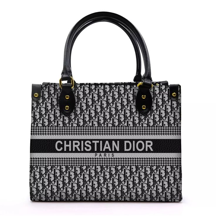 Christian Dior Medium Dior Book Tote Black And White Plan Leather Hand Bag Luxury Brand Fashion