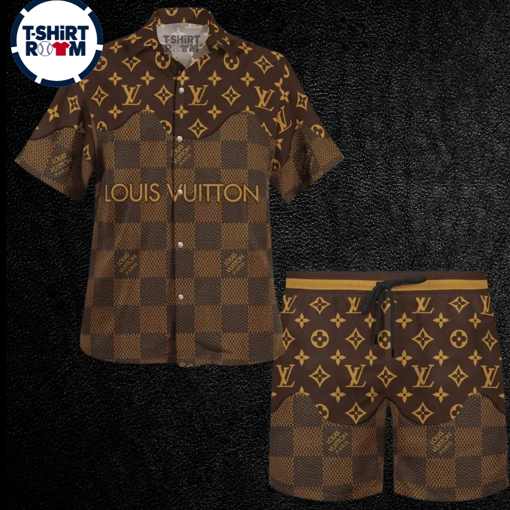 Louis Vuitton Brown For Men Luxury Short Sleeve Button Shirt – Lux012